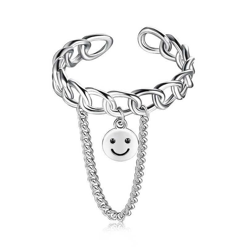 패션 보석 시리즈 925 스털링 실버 웃는 얼굴의 사진 숙녀를위한 조정 가능한 손가락 체인 반지 특징